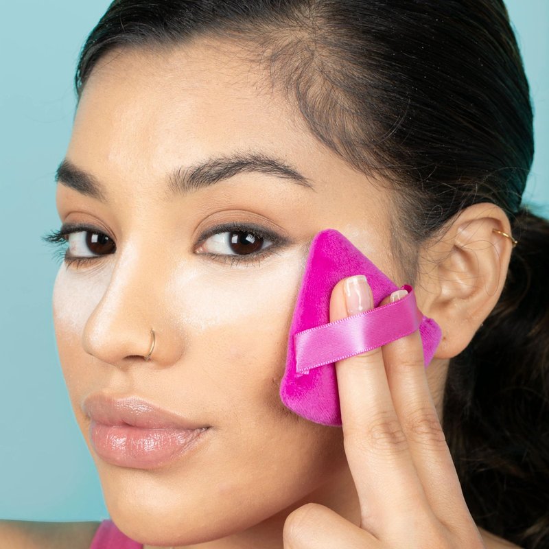 - Triangle puff provides buildable coverage and a filtered finish using both pressed and loose powder products such as foundation, setting powder, blush, contour, and highlight. Best used dry