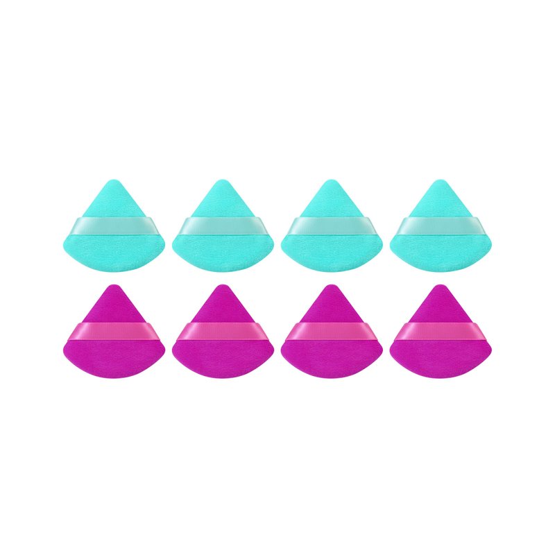 Freeman Mother Puffer Powder Puff 8 Count Set, Makeup Puffs For Pressed or Loose Powder, Velvet Material, Cloud Skin, Triangle Powder Puffs With Finger Band For Setting & Baking, Vegan & Cruelty-Free