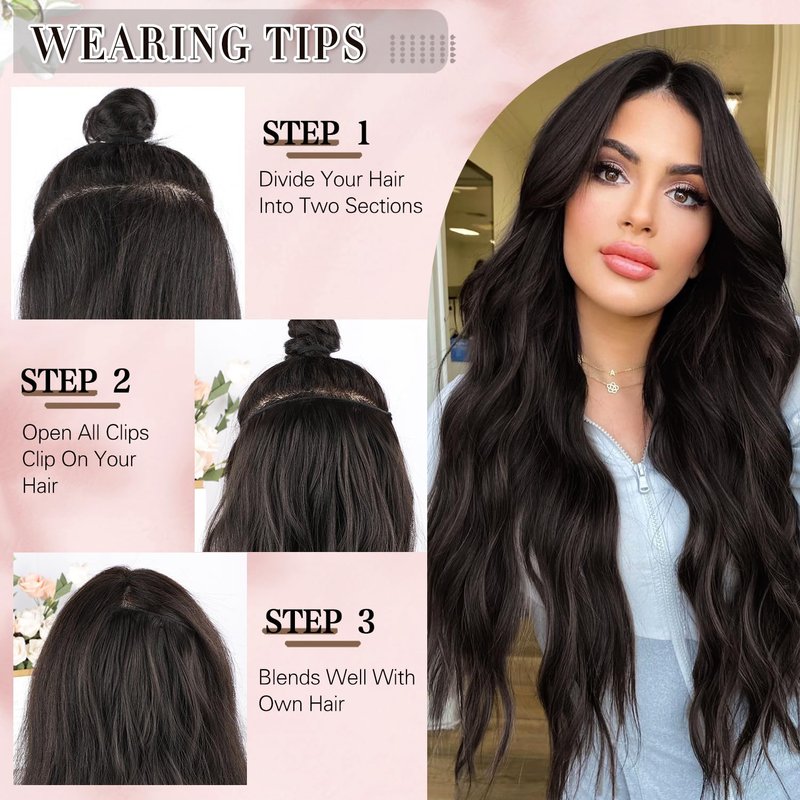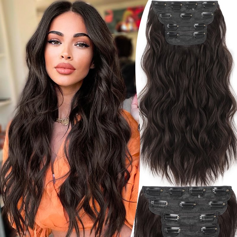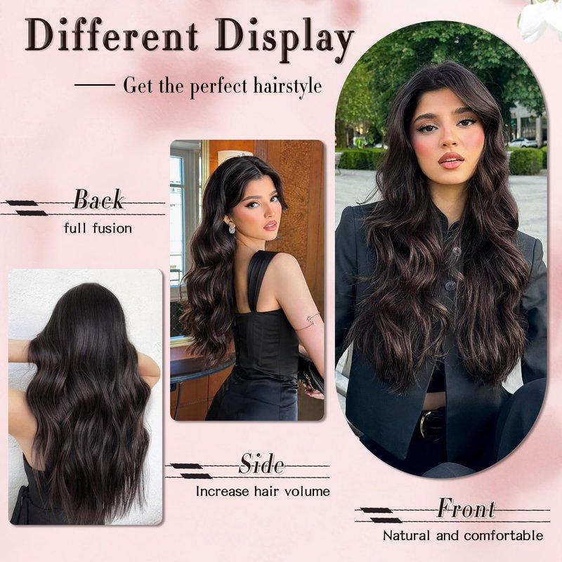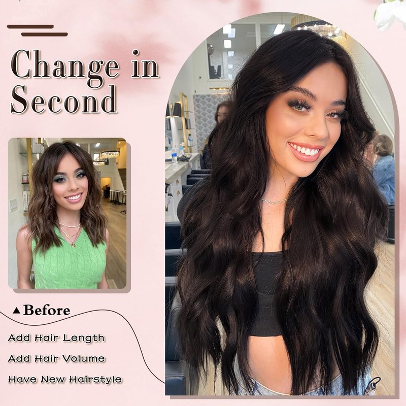 - 🌟【Healthy Material】Long wavy hair extensions are made of heat-resistant synthetic fibers. Tangle-free, silky, soft, natural-looking, long-lasting, wide-tooth comb. Compared with traditional hair extensions, there is no tape and no damage to the hair. Our hair extensions are secured with only BB clips and you can do it in just a few minutes. Long curly hair will give you a charming and elegant look.