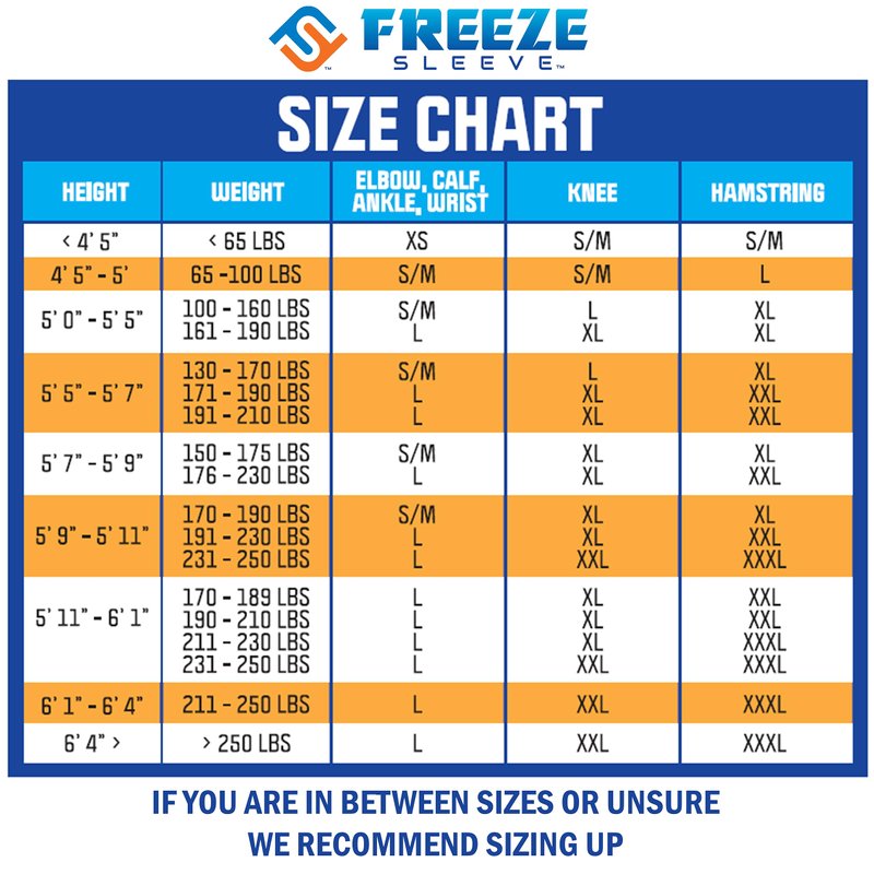 - EASY TO USE Simply take FreezeSleeve out of the freezer or microwave, & slide it onto the treatment area for instant therapy. Always slide FreezeSleeve on with the wide end at the top; the black threading should be at the bottom. Sleeves are interchangeable between arms & legs. Refer to the measurement guide to ensure proper fit around your preferred treatment area. If you are in between sizes, it is recommended that you order the larger size to ensure adequate cold therapy with compression.