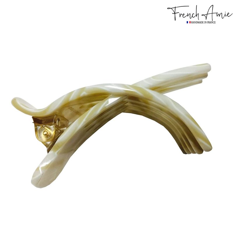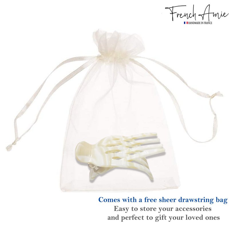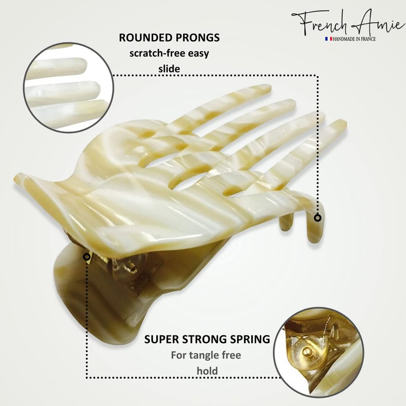 French Amie Bear Paw Small 2 ¾” Celluloid Handmade Hair Claw Clip Non Slip Flexible Hair Claw Clip for Thin Hair Yoga Jaw Brill Beak Alligator Women Hair Accessories, Made in France (Ivory)