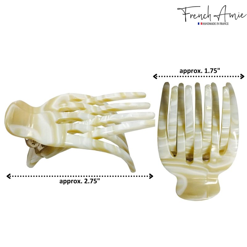 - The French made paw hair claw gives you quick styling solutions, a no-slip grip, and does not feel heavy on your head. It provides a snug fit around your head with a smooth curved design. The size of claw is approx. 2.75 inch x 1.75 inch (7 cm x 4.5 cm) .
