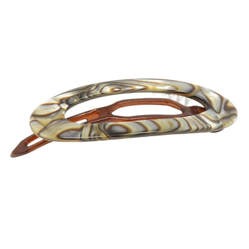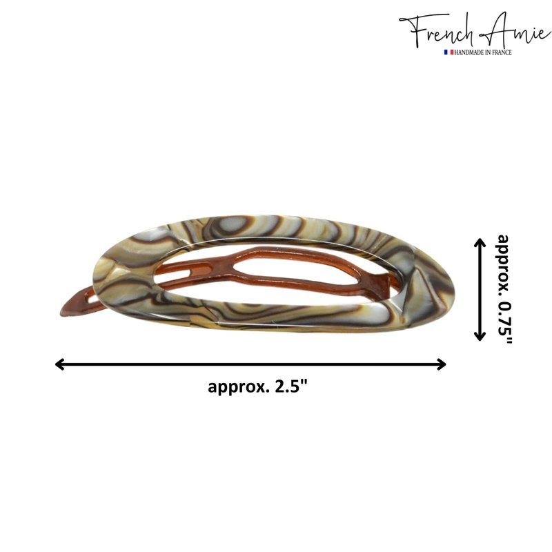 French Amie Oval Cut Out Small 2.5” Celluloid Handmade Side Slide-in Barrette Clip Strong Hold No Slip Grip Durable Women Hair Accessories, Made in France (Silver Onyx Gray)