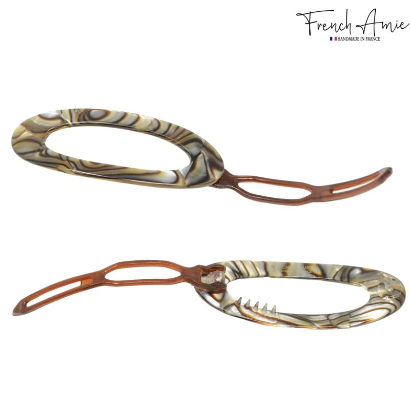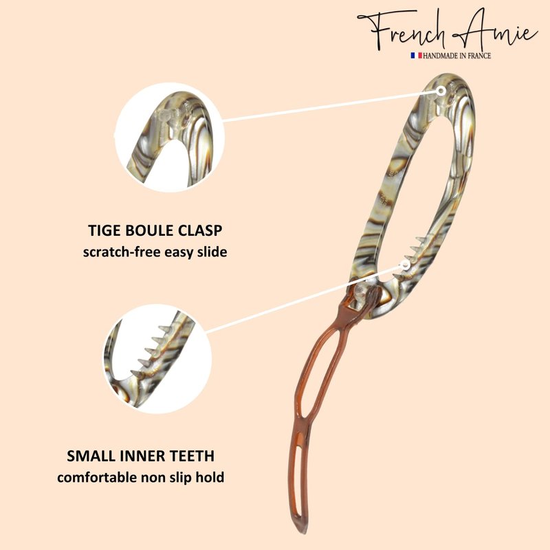 The French Amie Hair Collection provides a variety of accessories handmade in Europe. All products are perfectly polished for a splendid smooth finish and even edges. This assortment consists of a variety of products ranging from hair combs, clips, barrettes and more. The unique designs complement any hair type from short to long, fine to thick, and straight to curly: a versatile collection for extraordinary experience. French Amie prides itself for using cellulose-acetate that gives the piece its durable and luxurious definition.