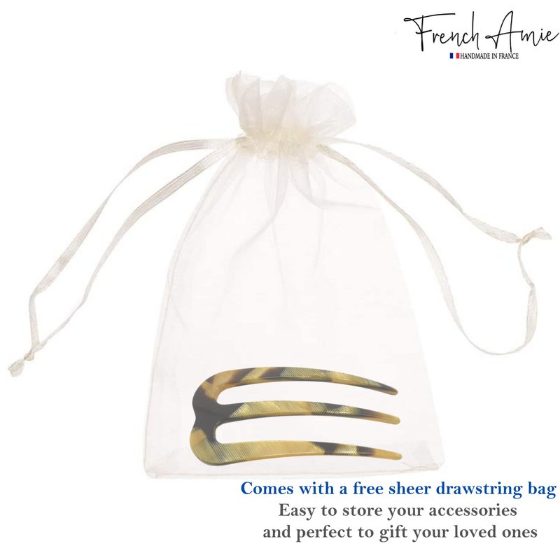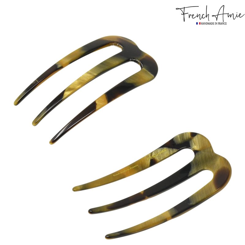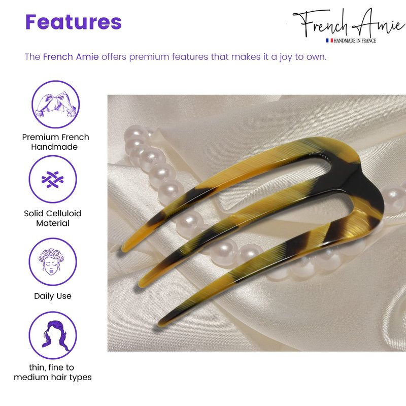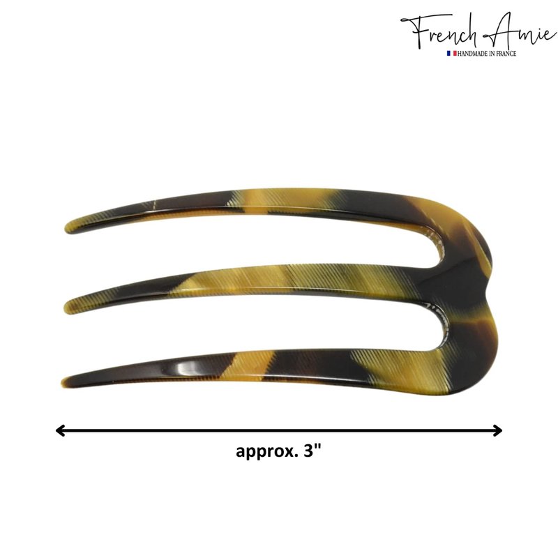 French Amie Tri Prongs 3" Medium Handmade Cellulose French Twist Stick Clip Pins 3-Prong Hair Fork for Girls Spiral Up-do Chignon Bun Holder Flexible Durable Styling Women Hair Accessories, Made in