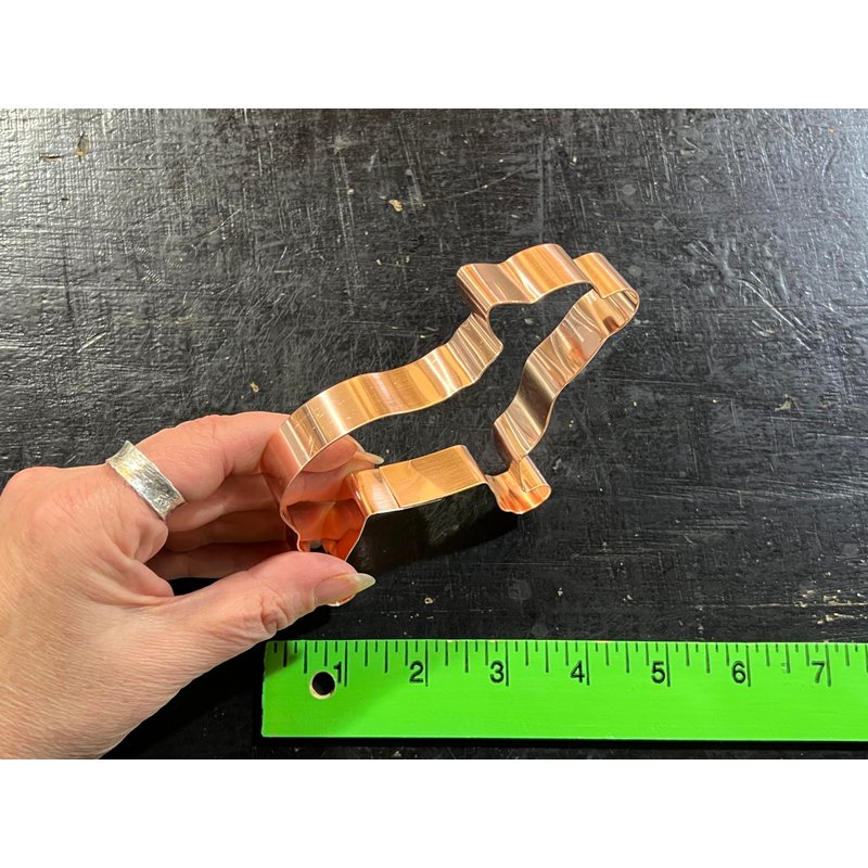 Bring a touch of canine charm to your baking with the French Bulldog Cookie Cutter. Crafted with precision in the USA, this 4.75 x 3.75-inch copper cutter captures the distinctive features of the beloved French Bulldog breed. Whether you're whipping up a batch of homemade dog treats or decorating sugar cookies, this versatile cutter will lend an adorable, handcrafted touch. The copper construction ensures durability making it a reliable tool for your cookie baking needs. Beyond its functional purpose, this French Bulldog Cookie Cutter also doubles as a delightful decorative piece. Display it on your kitchen counter or shelf to add a playful, pet-inspired accent to your space. Elevate your baking and décor with the French Bulldog Cookie Cutter – a unique, high-quality accessory that celebrates the charm of this affectionate canine breed. Each cookie cutter is hand crafted in our workshop from heavy weight solid copper. This cookie cutter is built to last for many generations of cookie baking, fondant cutting, ornament making, or even use it for tracing quilt patterns. Made from very heavy weight copper to maintain shape while using and storing. Great for gift giving or as a centerpiece to a cookie bouquet! Each one is slightly different from the next as they are formed one at a time and hand soldered using lead-free silver solder. Listing is for one cookie cutter.