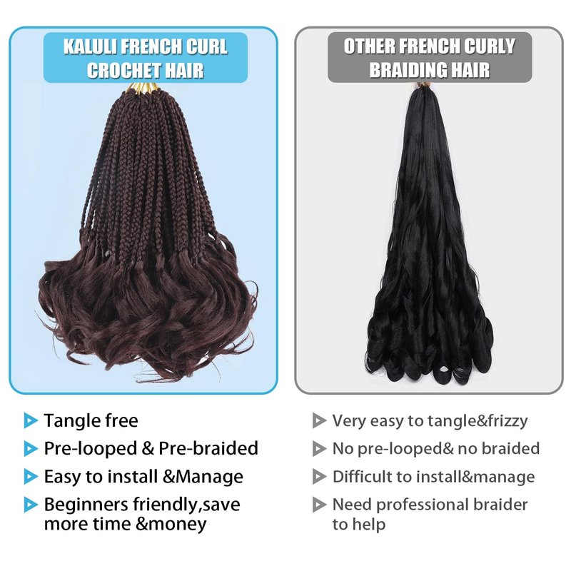 - Quick to install,Beginners Friendly:French curl crochet hair is different from french curl braiding hair,install french curl braiding hair takes a lot of time,easy to tangle;Pre looped french curl crochet braids save time and money,more easy and natural