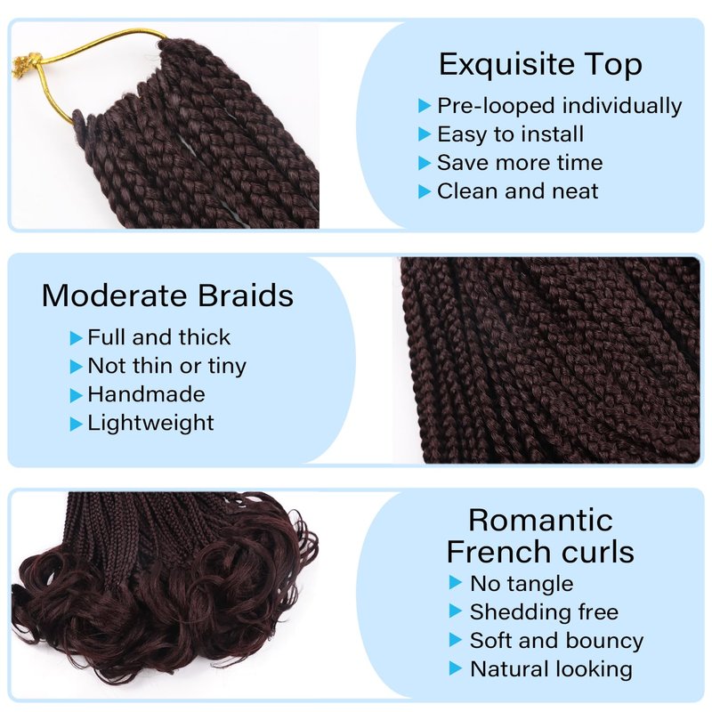 - Premium Material,Fluffy,Long Lasting:The box braids crochet hair braids is made of quality fiber,handmade,lightweight and bouncy,soft,no smell,no tangle and long lasting,touched like human hair