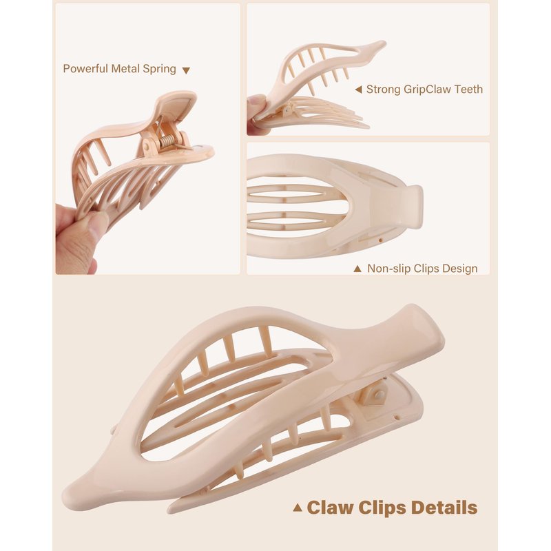 - Flat Design: These hair claw clips feature a sleek, flat shape that sits comfortably against the head without digging into the scalp.