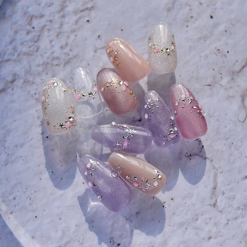 - 【French Tip Nail Stickers】Unique exquisite jelly mini star moon french tip nail designs, compact and gorgeous, with obvious three-dimensional effect, make your nails more elegant and charming, and give you an intuitive sense of refinement and sophistication.