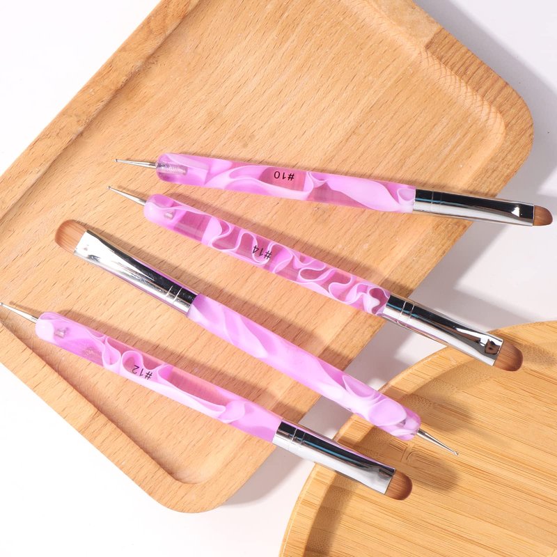 - 💜 Multi-Function Nail Brushes, use for a nail brush(one side) and a nail dotting pen(other side). Our two way french manicure brush is constructed with only the finest materials, including a high quality handle and premium nylon hair.