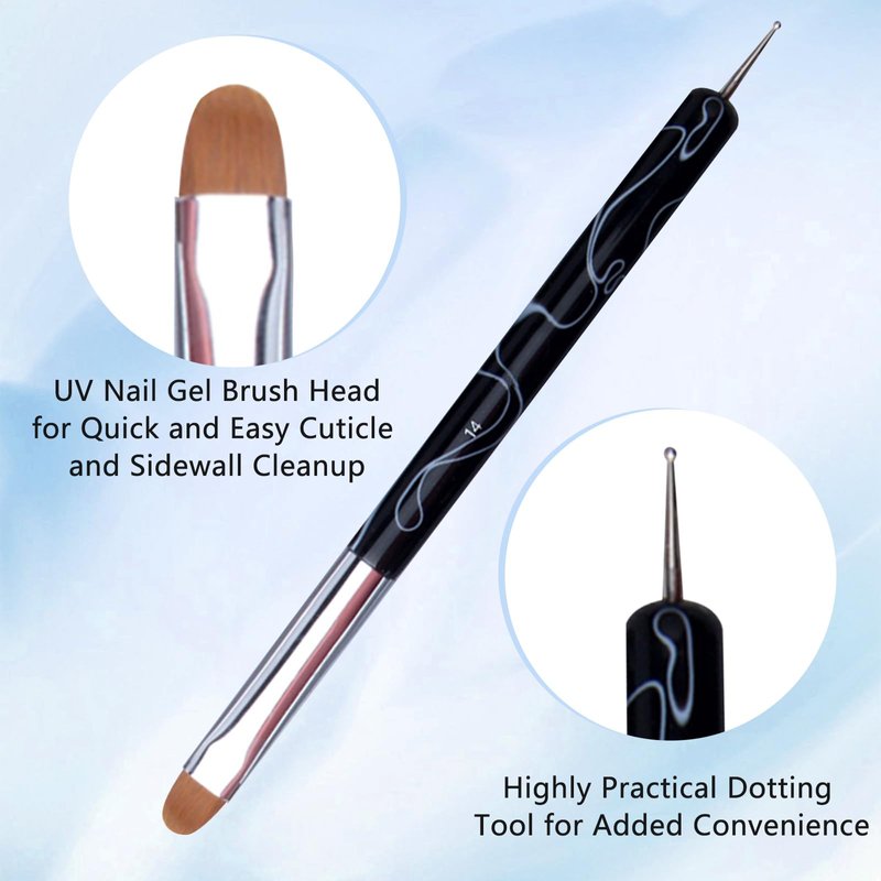 - [French Nail Brush] - 2 Way French Gel Acrylic Nail Art Brushes with Dotting Pen. This Nail Art Pen is Suitable for French Manicure, Clean Up, Drawing Large Patterns, Leaves, Petals, Etc.