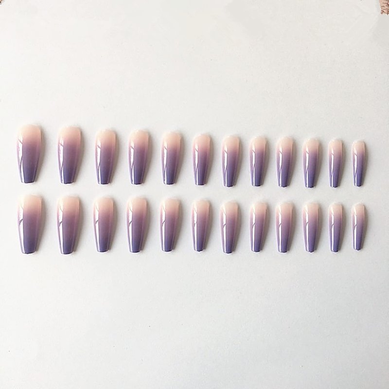 French Press on Nails Long Coffin Fake Nails Full Cover False Nails with gradient Design Acrylic Nails for Women and Girls 24Pcs (lavender)