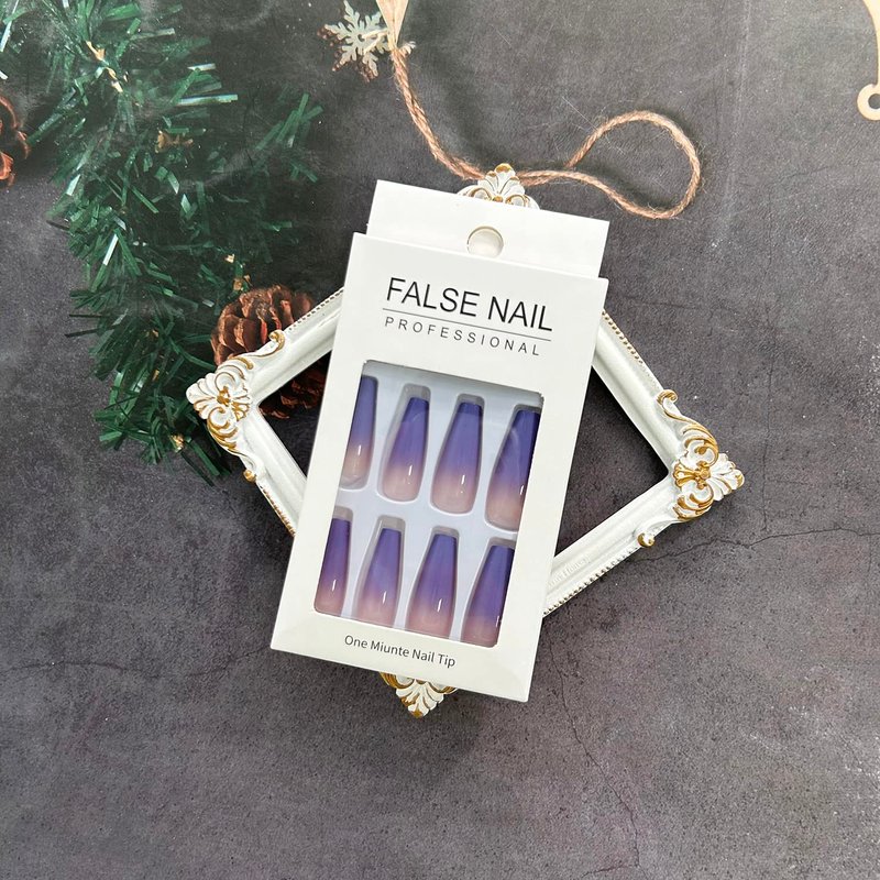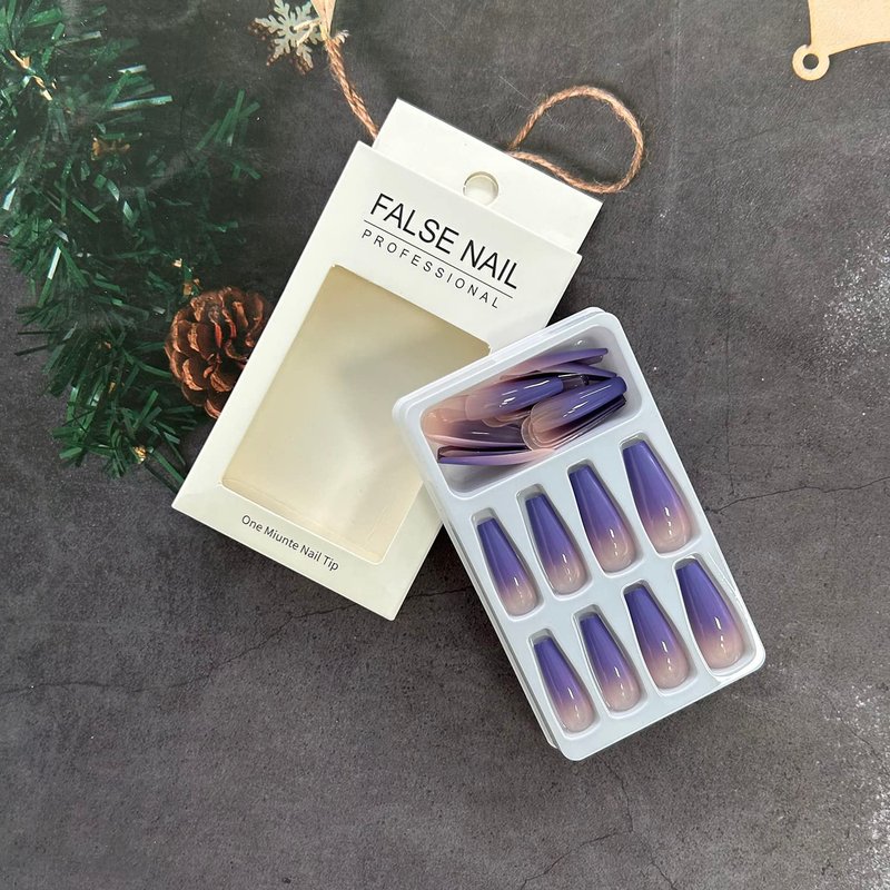 - False nails,includes 24 pieces of artificial nails and a quick-fit kit:1 mini file,24 jelly tabs,1 stick,1 alcohol pad.