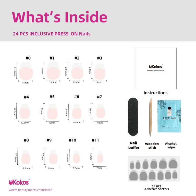 UKOKOS Press On False Nails offer a convenient and stylish solution for achieving salon-quality nails at home. These artificial nails come in a variety of sizes, shapes, and designs to suit different preferences. The application is simple—just clean and prep your natural nails, select the appropriate false nail sizes, apply the provided adhesive, and press the nails onto your own for a secure and seamless fit. Enjoy the flexibility of changing your nail look without the commitment of traditional gels. With UKOKOS Press On False Nails, you can effortlessly achieve a professional and eye-catching manicure in minutes. Elevate your style and showcase your creativity with this hassle-free and on-trend nail accessory.