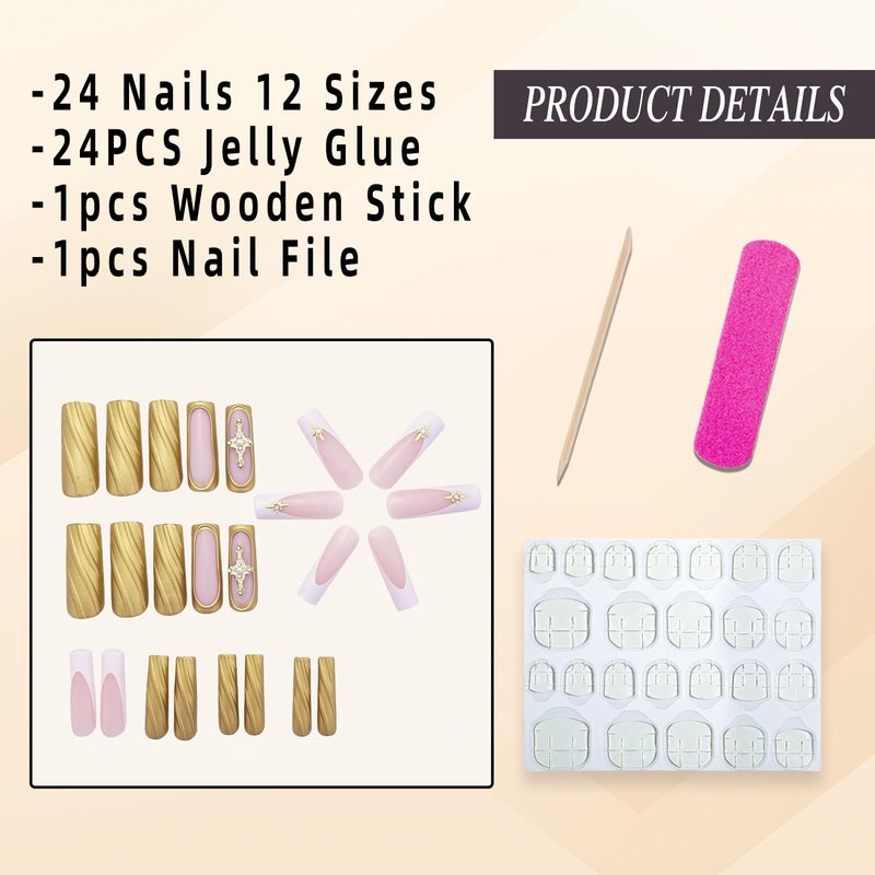 - Package: You will get 12 different sizes french tip press on nails art 24pcs set, including a nail file, 24 pieces of jelly glue and a nail remover bar. This product does not carry glue due to transportation. (Jelly glue is only suitable for temporary use. It is recommended to purchase professional glue for false nails.)