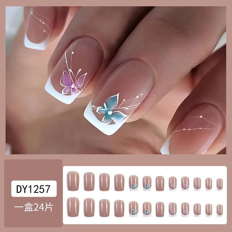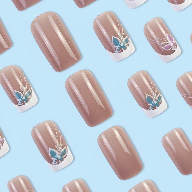 Item Type: Glossy Pink Blue Butterfly False Nails