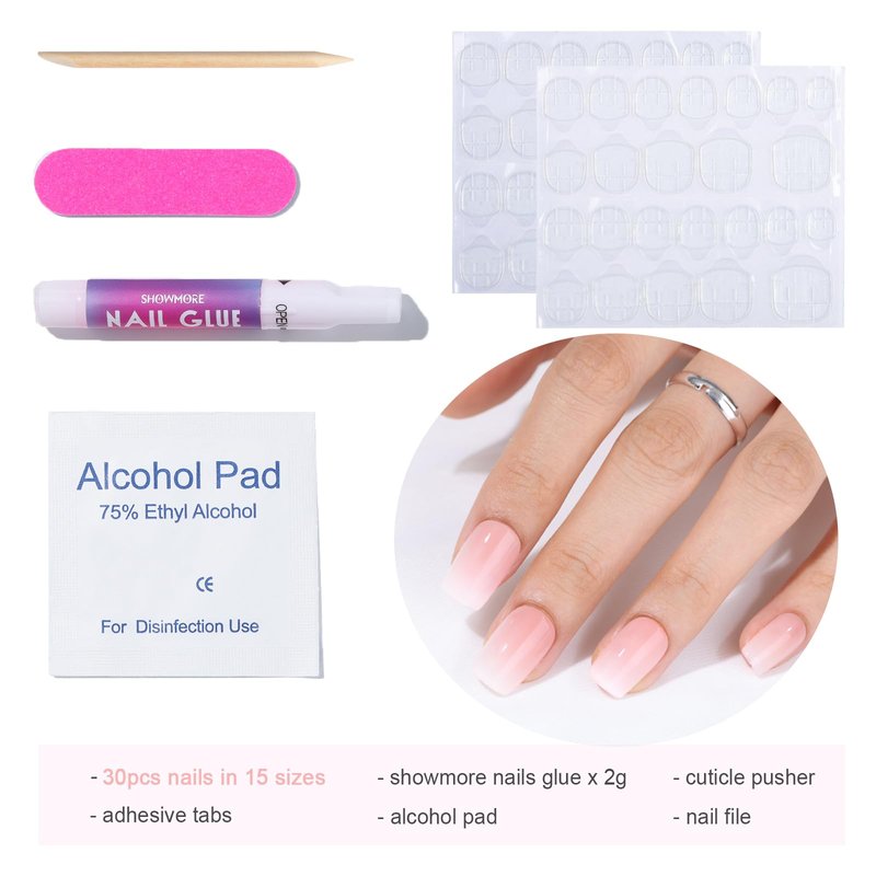 - 30 Nails in 15 Sizes: Our all in one press on nails kit provides everything you could possibly need: nail glue, adhesive tabs, nail file, cuticle stick, and prep pad.