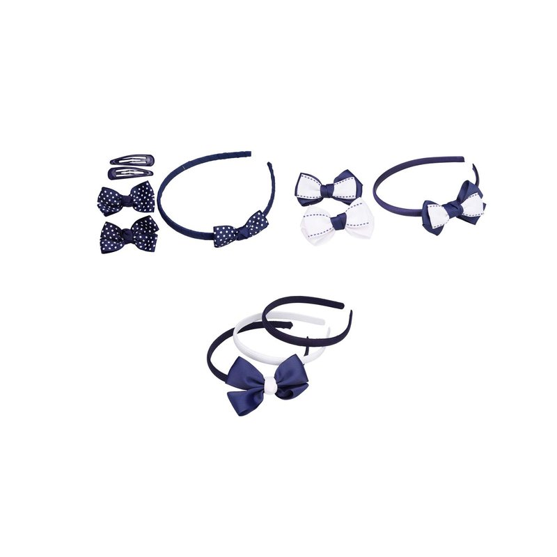 - Stylize a school uniform with our assortment of navy and white headbands and clips that are comfortable, good-looking and functional