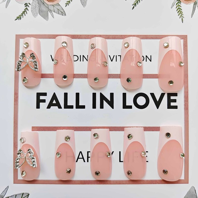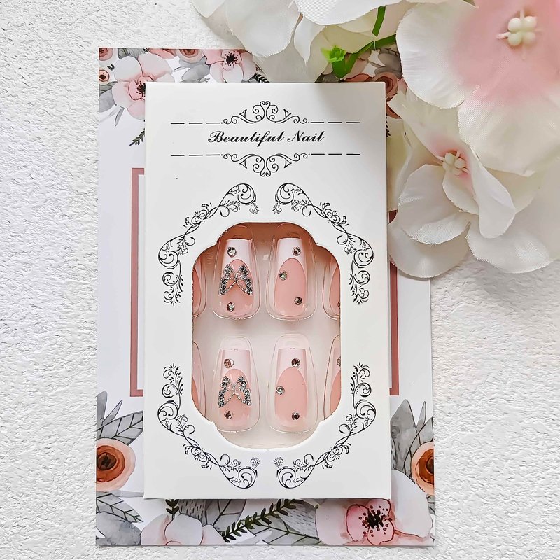 Product Description Feature 1. There are a total of 24 pcs fake nails, including 12 sizes, you can DIY your unique nail art. 2. Our nails are made of high-quality materials, will not harm your nails or body, using 100% safe and healthy materials. 3. In just 5 minutes, you can get the same shiny look yourself instead of spending half an hour paying for an expensive manicure at a nail salon. 4. Suitable for professional, nail art school/college, nail art artist and personal/home use, etc. 5. Suitable for nail salons and DIY nail art at home, wonderful gift for your wife, Girlfriend, Mother or sisters, And excellent for Parties/Wedding/Costume Ball. How to Use: 1. Gently sand the surface of your nails, rinse and dry. 2. Choose suitable false nails and apply jelly glue on the back of the false nails. 3. Press the fake nails on your nails and hold for 25 seconds. 4. Trim according to the nail shape and length you want. How to remove fake nails: 1. Soak your nails in warm water for 3-5 minutes. 2. Wait for the false nails to loosen, then gently remove the false nails and remove excess nail glue. 3.Fake nails can be reused after nail removal, you can keep the fake nail tip for next time use. Precautions: 1. Do not touching water within 1 hours after wearing 2.Please do not leave the nail in water for a long time, it will make the nail easy to fall off.