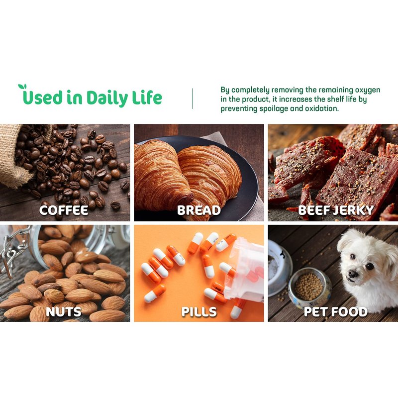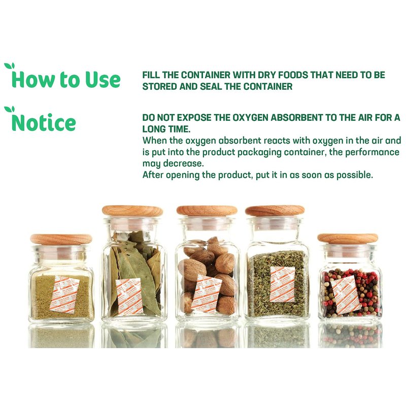 OXYGONE - PREMIUM QUALITY Our Oxygen Absorber is the highest quality in the industry for Long-Term Food Storage . Our Oxygen Absorber is made from best quality cotrol systems through 4 stages. 1. Material Inspection 2. Process Management 3. Finshed-Product Inspection 4. Product Anaysis According to the ISO quality Manual, the quality assurance system ensures product safety. Even our packet material was tested under strict regulation for food. You can experience the difference with other products. Products of Healingtime4you 100% satisfaction. NO RISK If you have any problems about our products, we will give you a free replacement or full refund. OXYGONE - OUR PRODUCTS Our Oxygen Absorber is a Preserver . Our Oxygen Absorber reacts very strongly when it is exposed to air. Our Oxygen Absorber is the best natural-freshness preserver that maintains the original taste, flavor, color, and nutritive value of food. Sizes for Applications - 100CC for a Pint - 300CC for a Quart - 500CC for a Gallon - 2500CC for a 5 Gallon