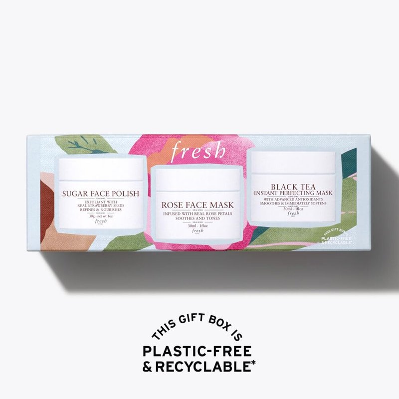 Fresh Face Mask Essentials Gift Set Sugar Face Polish, Rose Face Mask, Black Tea. 1floz/ 30gr Sugar Face Polish Exfoliator 1floz/ 30ml Rose Face Mask 1floz/ 30ml Black Tea Instant Perfecting Mask