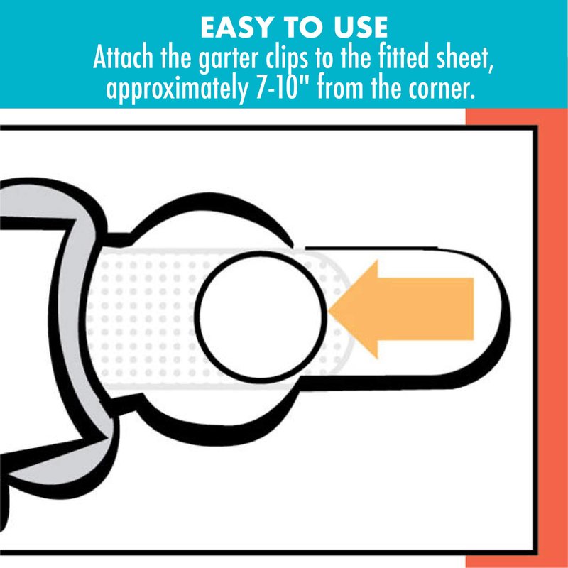 - Easy to Attach: Place the clips about 7-10 inches from each side of the sheet corner, then slip the sheet strap under the mattress. They can also be attached to flat sheets to transform them into a fitted sheet
