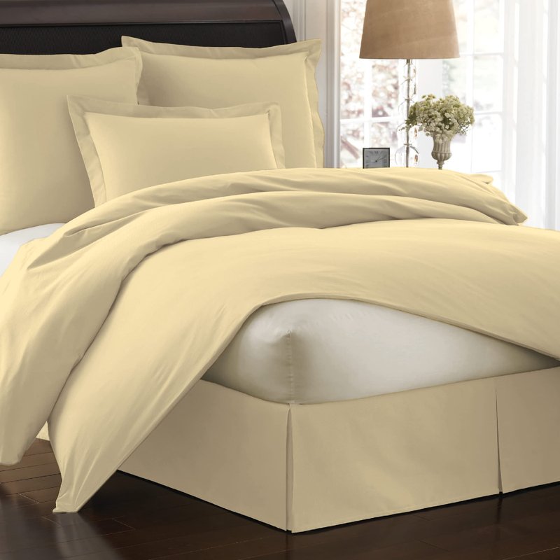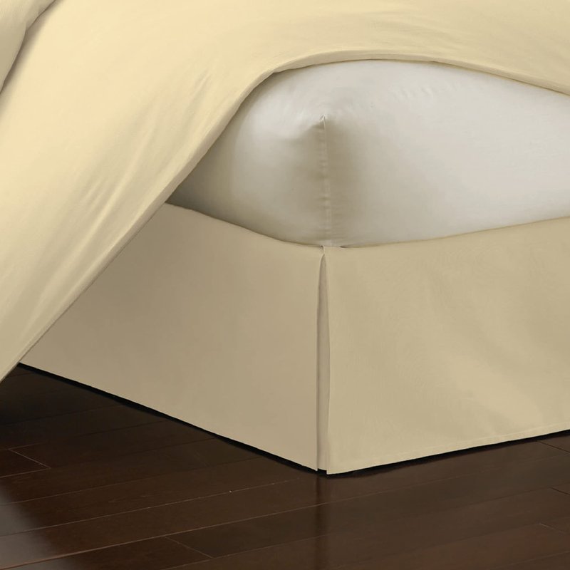Fresh Ideas Poplin Tailored Bed Skirt Dust Ruffle, Cotton Blend Design, 14" Drop Length, Queen, Butter (FRE20114BUTT03)
