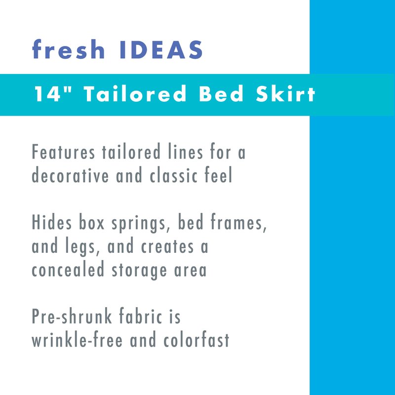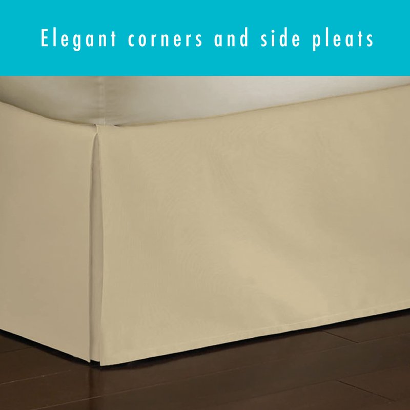 - Timeless Design: This bed skirt features a solid tailored base with beautiful, mitered corners and side pleats that creates a traditional and clean look. The poplin tailored lines also add a decorative and classic feel to any room.