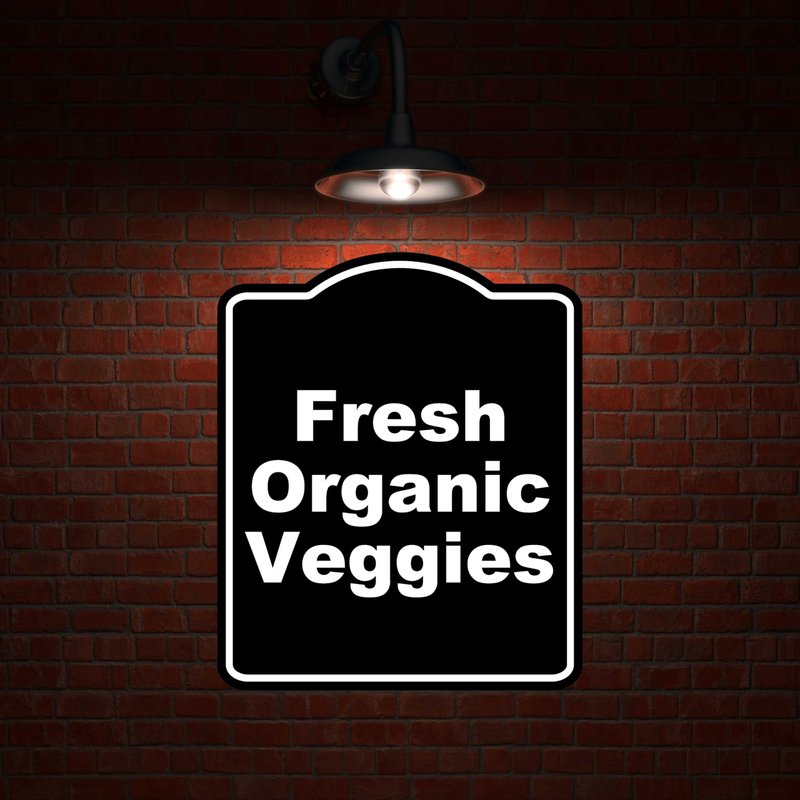 Fresh Organic Veggies BLACK Minimalist Aluminum Composite Sign 20 x 24 inches