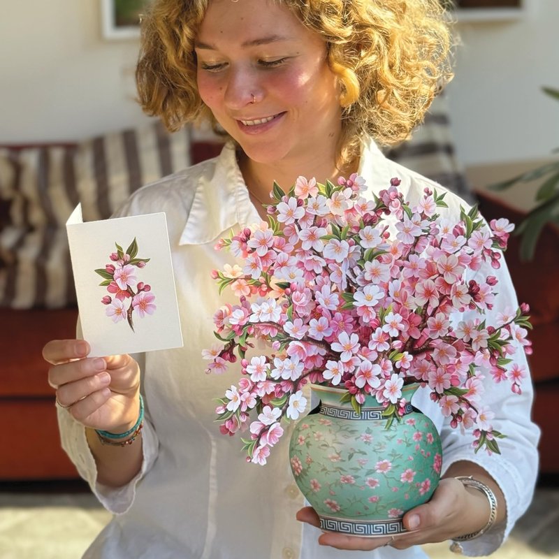 - JAPANESE CHERRY BLOSSOMS BOUQUET of pop-up pink and white cherry blossom flowers unfold in your hand. Comes with blank note card that is the perfect gift card holder for birthdays, anniversaries or everyday.