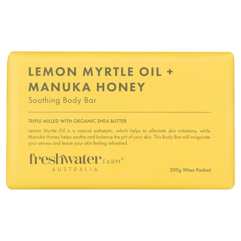 - Lemon Myrtle Oil will invigorate the senses with its uplifting citrus aroma, and when paired with Manuka honey, will soothe and balance the skin. This body bar will leave your skin feeling refreshed. Our traditionally triple-milled soap bars are made with only the finest natural ingredients. Each Body Bar is carefully made with Australian Olive Oil and Shea Butter to create a creamy lather that is rich in moisture.