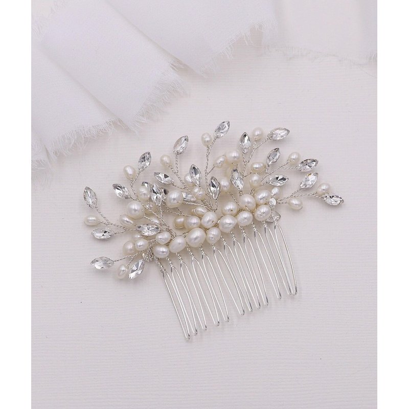 - This elegant comb features a cluster design of freshwater pearls with accents of marquise rhinestone crystals