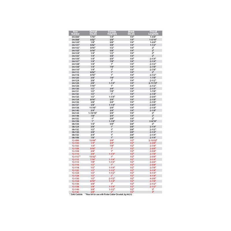 Freud 04-096: 1/16" (Dia.) Double Flute Straight Bit, Red