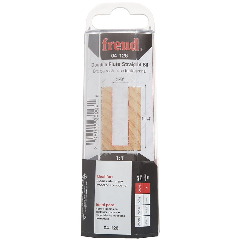 - Style: 3/8-Inch Diameter by 1-1/4-Inch Double Flute Straight Router Bit with 1/4-Inch Shank