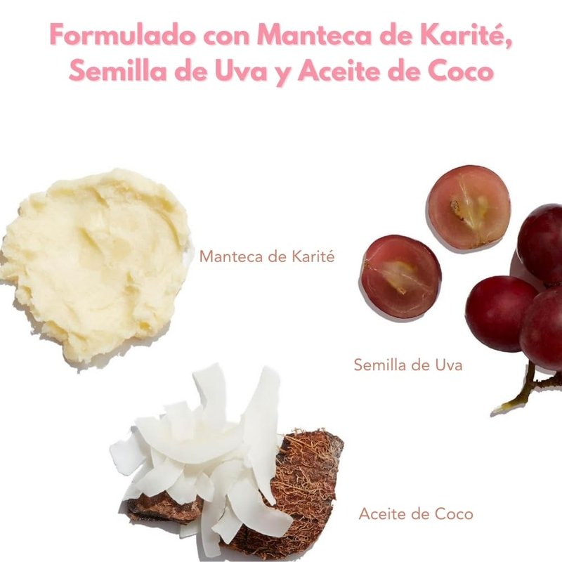 - COCOCNUT OIL, SHEA BUTTER + GRAPESEED: Gentle emollients that keep moisture on lock and strengthen the skin’s natural barrier