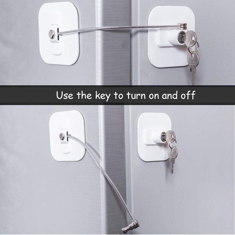 Stronger Refrigerator Lock:The refrigerator lock with 3.2inch x 3.2inch square Plates with Steel Aircraft Vinyl-Covered Cables, this high quality refrigerator lock(fridge lock\freezer lock) will protect your special items or even your lunch from getting into the wrong hands.