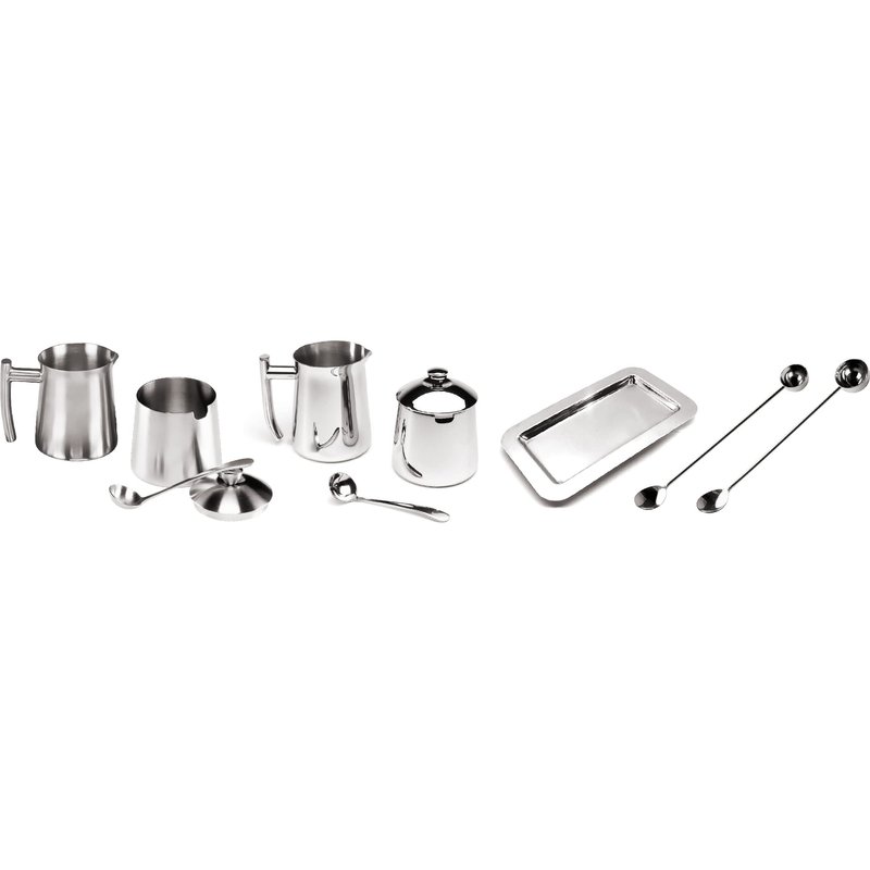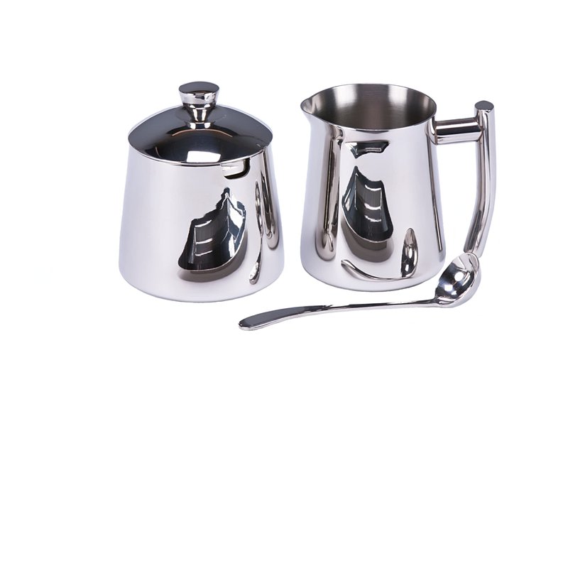 - Mirror finish 18/10 Stainless Steel creamer and sugar bowl set with spoon