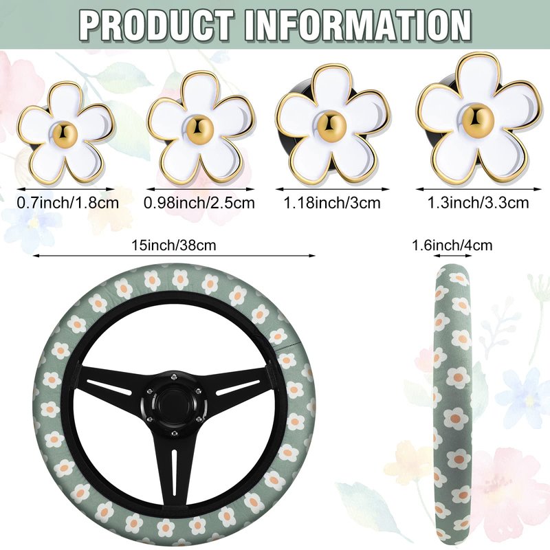 - Fit for Most Cars: these mini flower wheel protectors are suitable for approx. 14.5 inch to 15 inch diameter medium-sized steering wheel, fitting for most types of cars; Please measure your car steering wheel spacing before using to avoid unnecessary waste