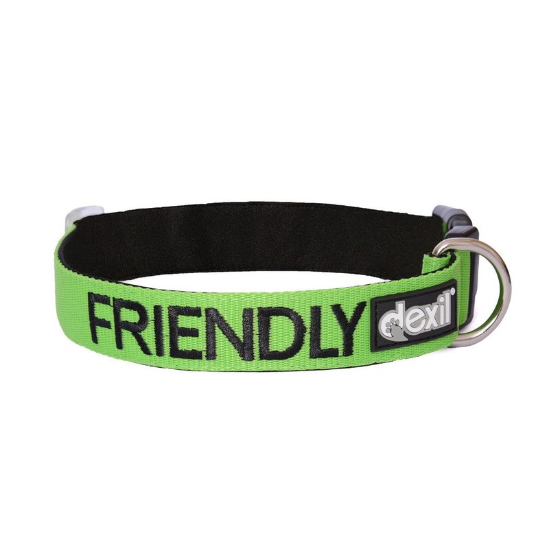 Friendly Green Color Coded S-M L-XL Buckle Dog Collar (Known As Friendly) Prevents Accidents by Warning Others of Your Dog in Advance (L-XL 15-25" Lx1.5 W)