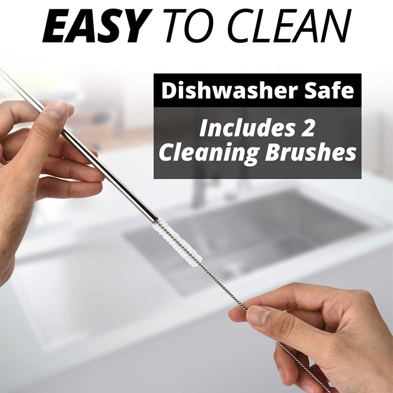 - EASY TO CLEAN: Our metal straws are dishwasher safe, so you can say goodbye to the hassle of hand-washing. And just in case, we've thrown in two free cleaning brushes, so you can clean with ease.