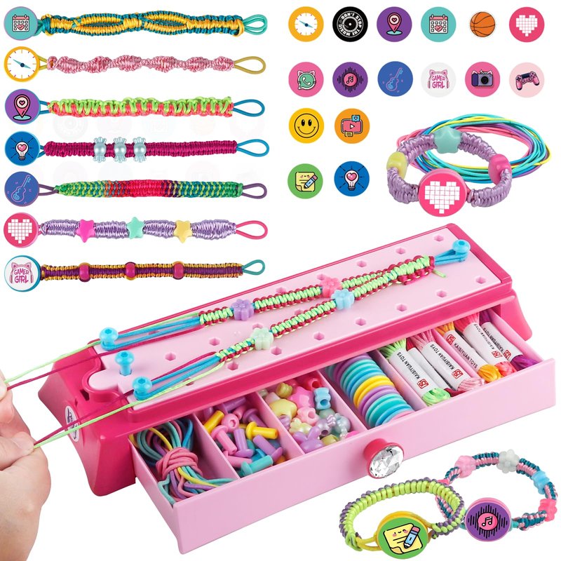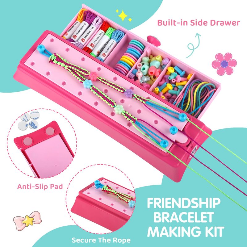 - Upgraded Friendship Bracelet Making Kit with Unique Bright Color, Built-in Side Drawer Design for Easy Storage: Does it bring back memories of your younger days-love making jewelry? Share your sweet memory of friendship bracelet making and have fun with your kids. Children can play individually, or collaboratively create their favored bracelet with friends. Sets made from premium, non-toxic ABS material, safe and durable for kids.