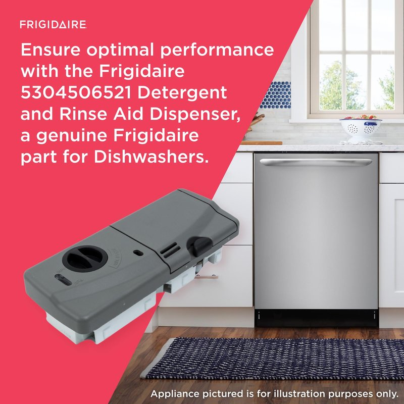 - Quality Craftsmanship: The Frigidaire 5304506521 Detergent and Rinse Aid Dispenser is designed and engineered by Frigidaire to exact specifications, which, unlike non-genuine parts, ensures optimal performance for your appliance