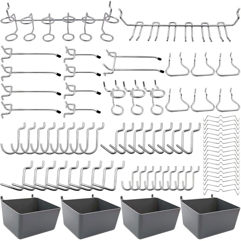 - Package contains - 80pcs 13 different types of pegboard hooks, such as pegboard bins, peg locks, straight hooks, curved hooks, angled hooks, etc.