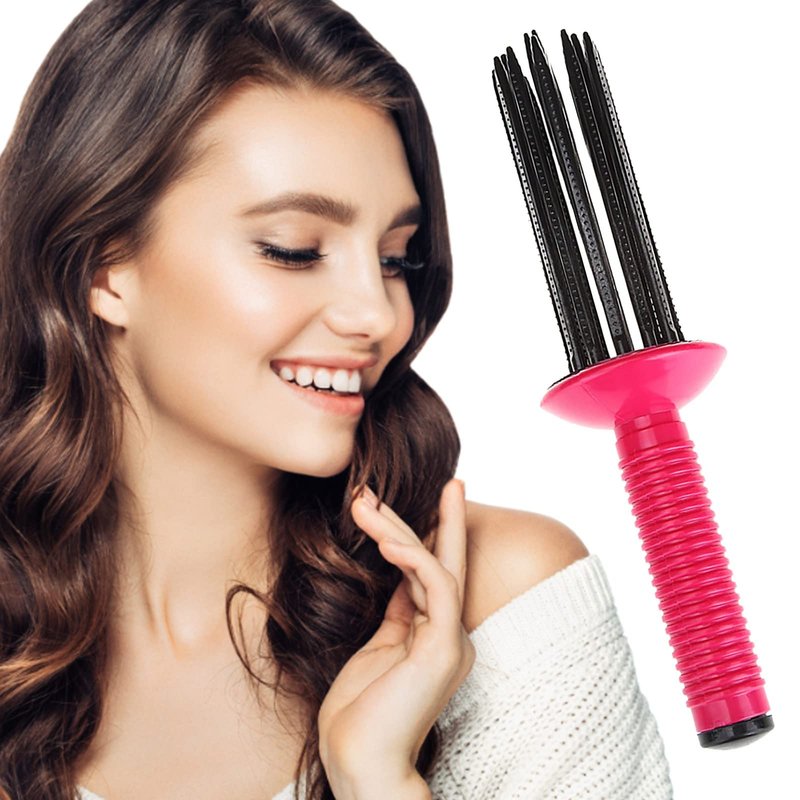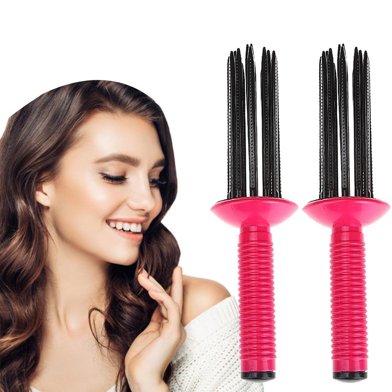FRJINIE Curly Hair Styler Tool, 2 Pcs Air Volume Combs,17 Teeth Round Hair Fluffy Curling Roll Comb,Anti‑Slip Curling Wand,Hair Curler Curling Make Up Brush Roller Tool for Home Salon (2 PC)