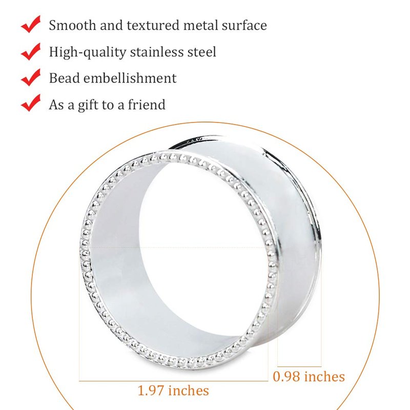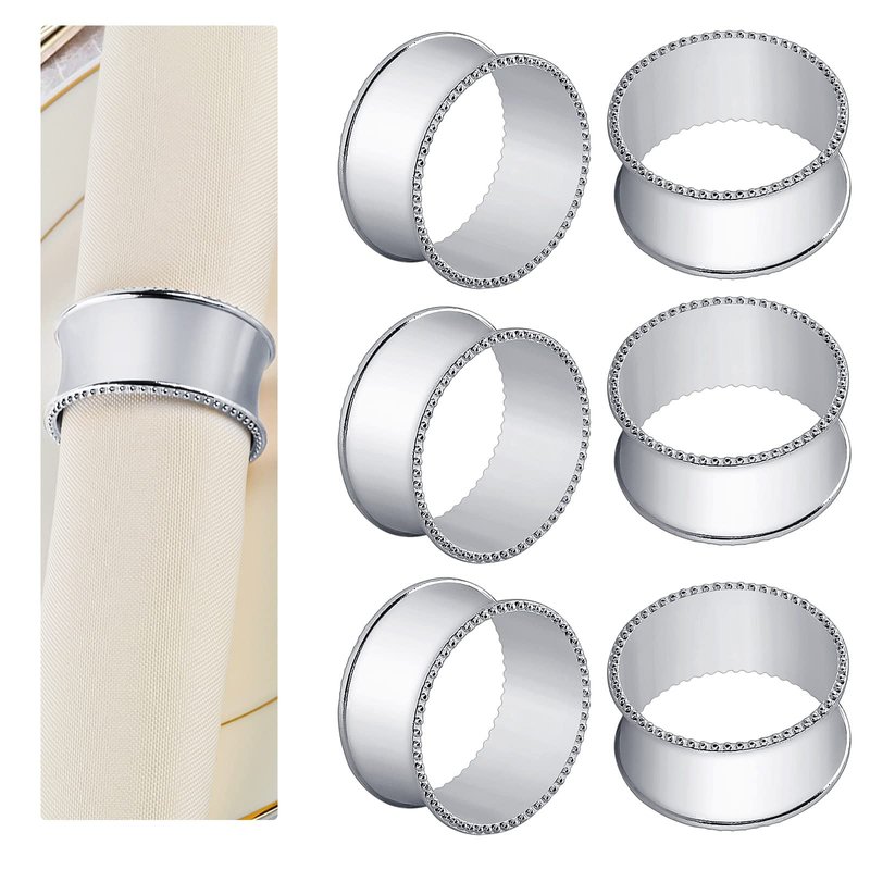 Frjjthchy 6 Pcs Stainless Steel Bead Side Napkin Rings Delicate Serviette Buckles (Silver)