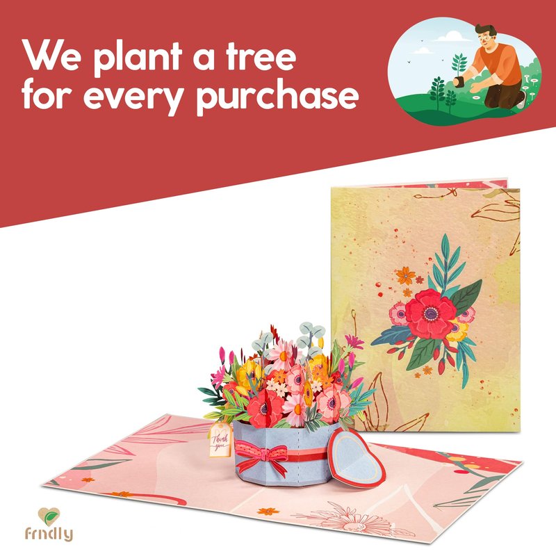 - THE FRNDLY PROMISE - We use recycled materials from packaging to the card and insert. For every card sold, we pledge to plant a tree. It's not just avoiding deforestation, it's about actively restoring the planet with each pop-up card purchase