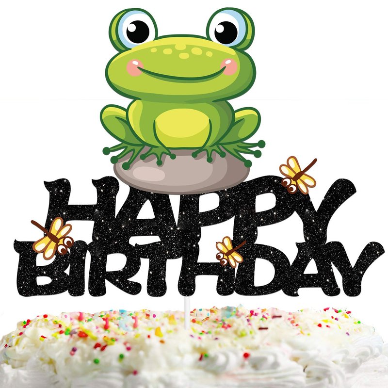 Frog Happy Birthday Cake Topper Decorations with for Animal Theme Picks for Baby Shower Party Decor Supplies