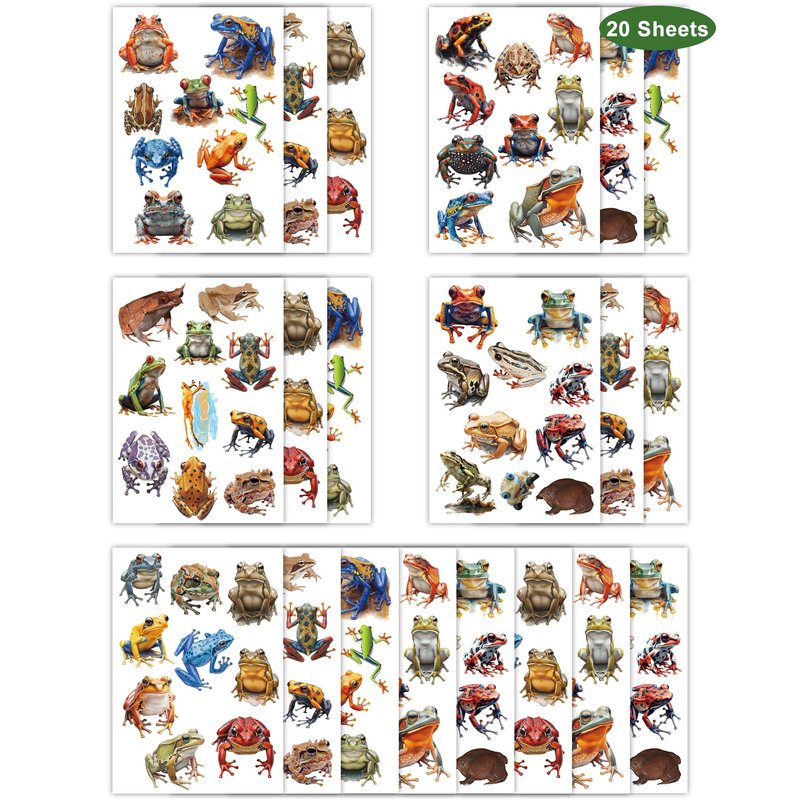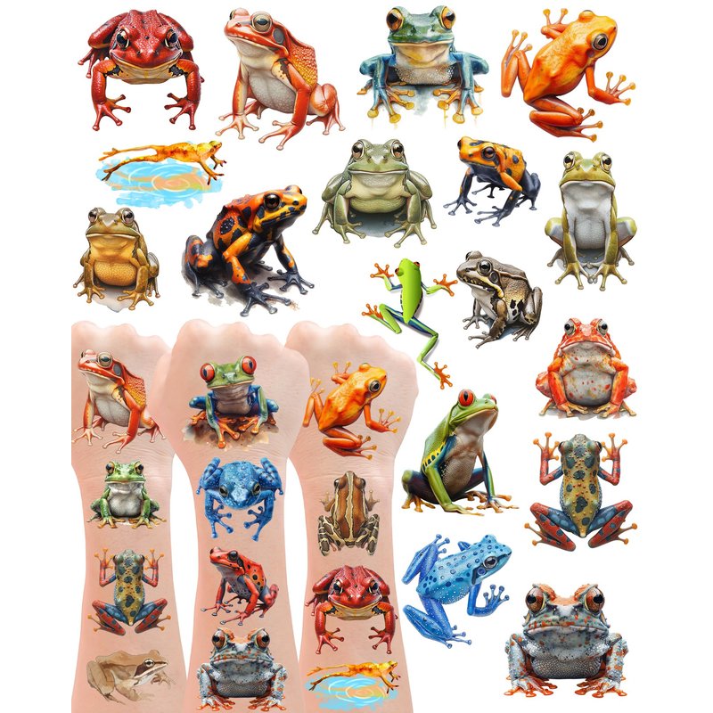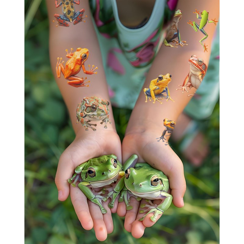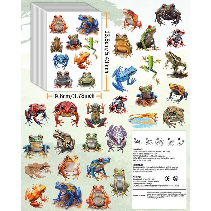 Frog Temporary Tattoos, 188 PCS 20 Sheets, Hypoallergenic, Hyper-Realistic Design, Frog Party Favors and Frog Themed Gifts, Leap Frogs Enthusiasts