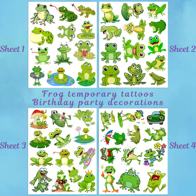 Brand: VNXCRAFTIES. Product: Temporary Tattoos. Theme: Animal Cute Frog . Birthday Party Decorations, Party Favors.